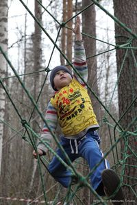 Ну и конечно Марафон для самых маленьких. Детский он потому, что самым старшим не больше 6 лет, а главным условием участия является способность совершенно самостоятельно передвигаться по настоящим скальным трассам и веревочным препятствиями, бревнами и прочим лесным и горным преградам. Победители здесь все, призы получил каждый участник.